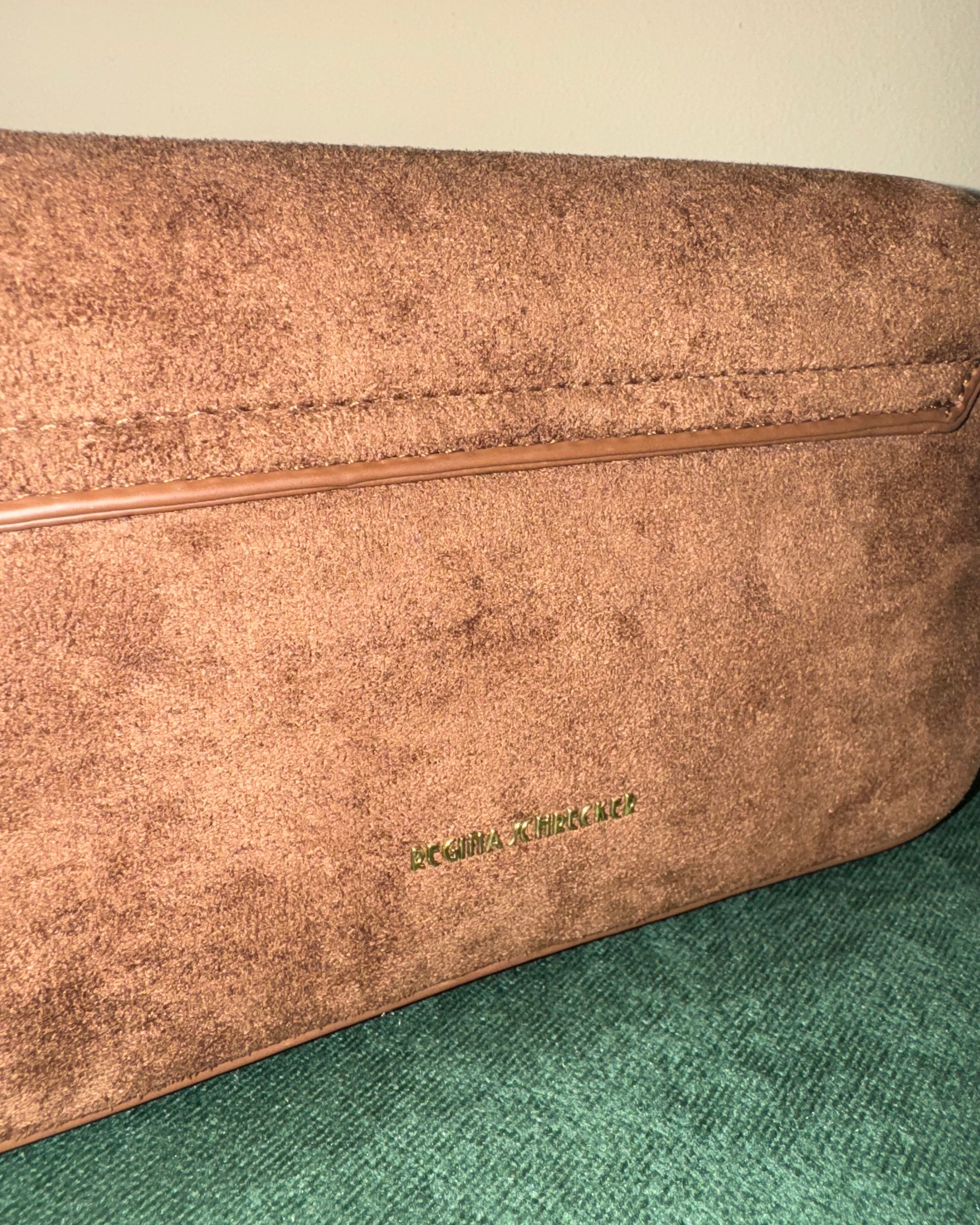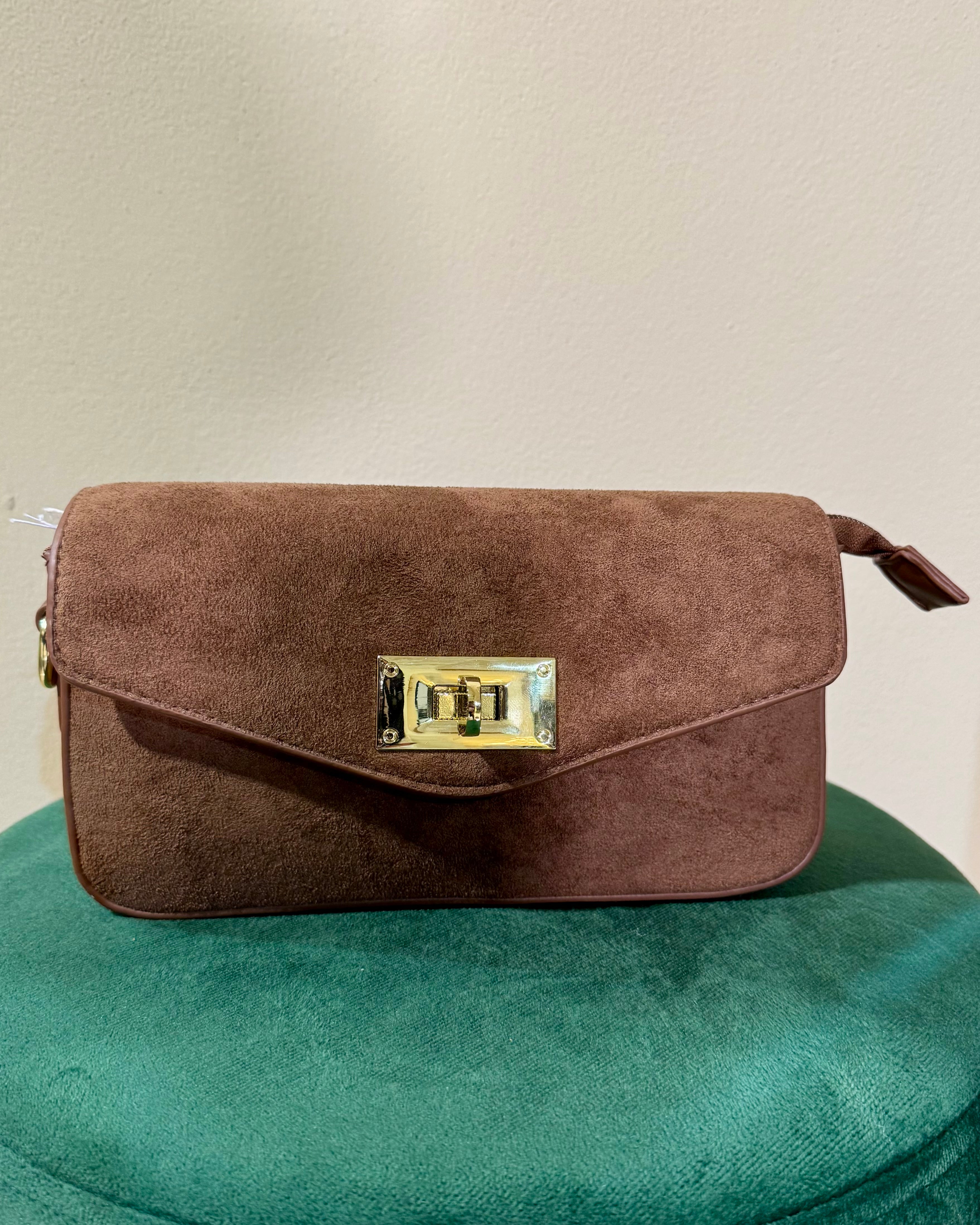 Questa elegante borsa Schrecker è perfetta per ogni occasione. Realizzata in morbida e resistente suede, presenta laterali e tracolla in similpelle color caramello e hardware color oro lucido. Grazie alla sua cerniera sotto la patta e alla chiusura girevole, avrai sempre tutto a portata di mano in modo sicuro e comodo.