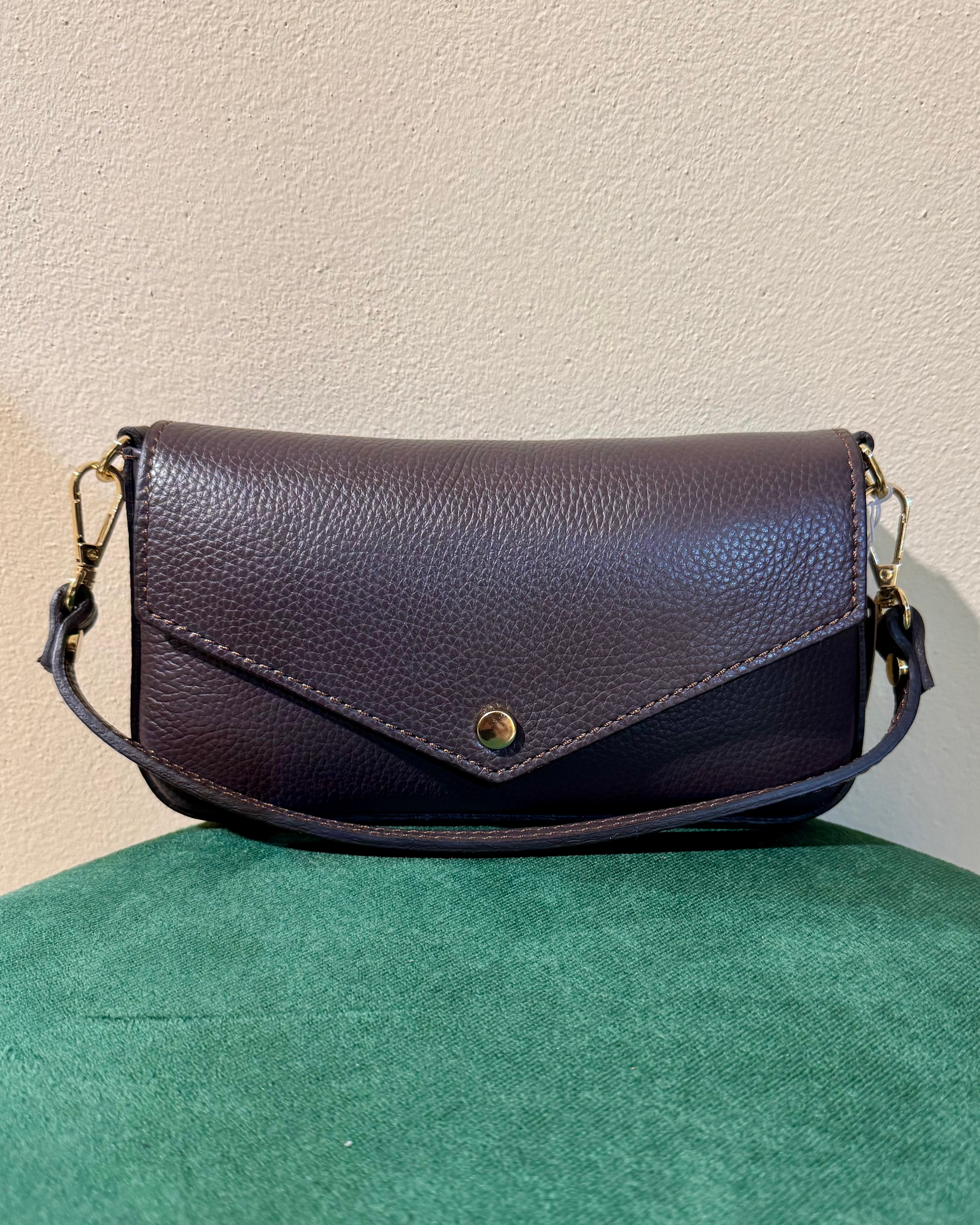 Questa borsa rettangolare in similpelle color cioccolato con hardware color oro è perfetta per ogni occasione. Dotata di un comodo manico per portarla a spalla e una pratica tracollina, questa borsa ti accompagnerà ovunque. Il suo design elegante e la sua resistente struttura la rendono un must-have per ogni fashionista.