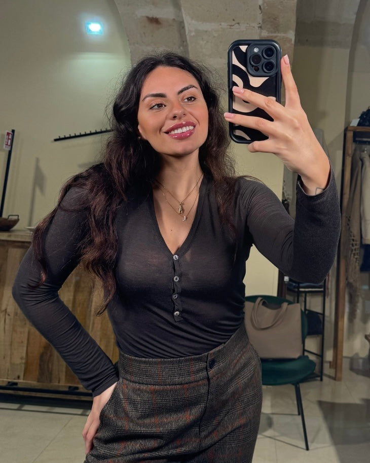La maglia serafino in cashmere è un capo versatile grazie ai bottoni che permettono di usarla come sottogiacca. Realizzata in pregiato cashmere, garantisce un comfort unico e un tocco di eleganza. Perfetta per essere indossata sia da sola che come sottogiacca, si adatta a ogni occasione.